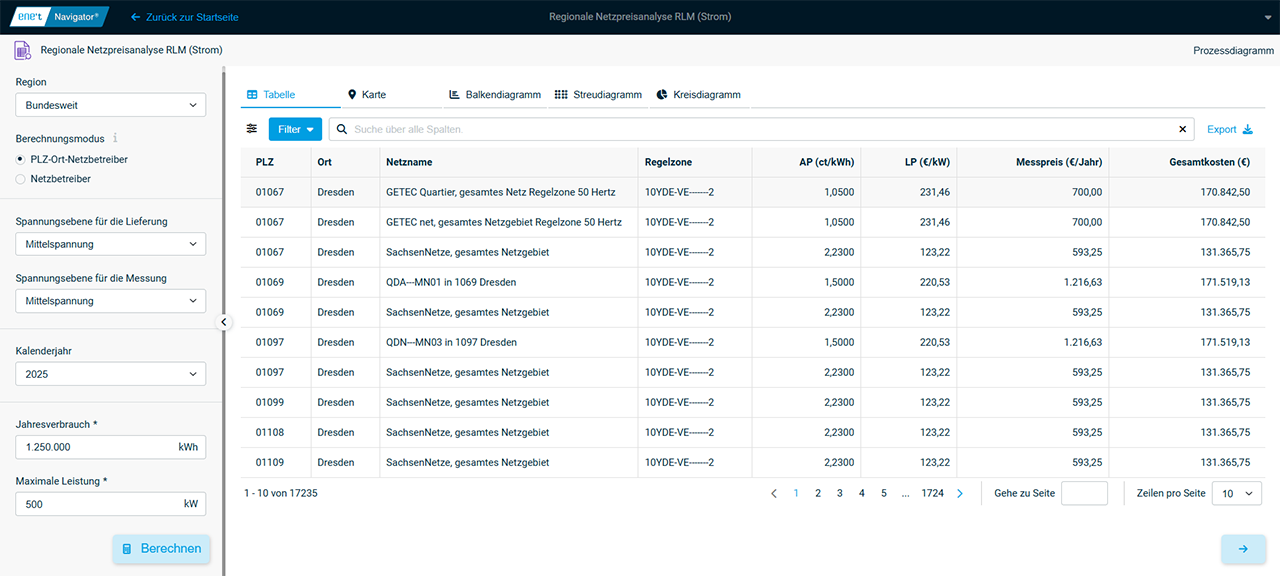 - Berechnungsmodus (PLZ-Ort-Netzbetreiber oder Netzbetreiber)
